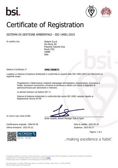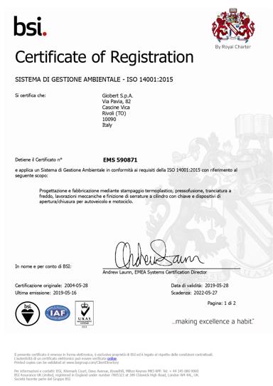 Giobert ha conseguito negli anni numerose certificazioni per la gestione dei suoi impianti.